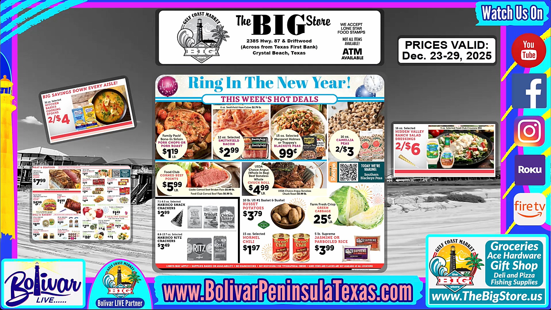 From High Island to Port Bolivar, Texas and everywhere in between, Bolivar Live TV is your direct connection to the Bolivar Peninsula and Crystal Beach, Texas. If you want the latest on what to do, where to go, what’s open, what’s happening, and what the weather is doing, you’re in the right place.