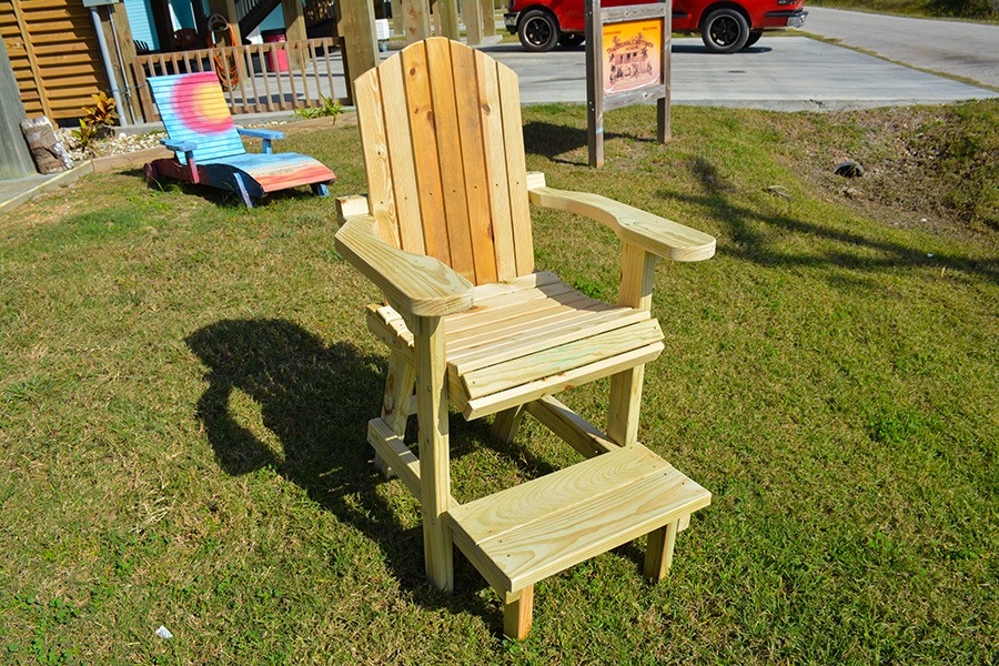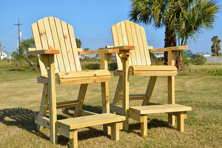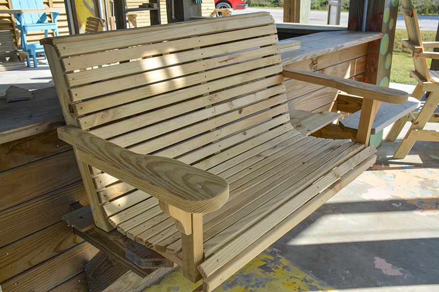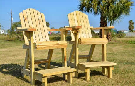 Locally Owned and Built on Bolivar Peninsula in Crystal Beach Texas. Custom Wood Deck Chairs, Tables, Swings- Singles and Doubles, Outdoor Bars, Bar Stools and more.