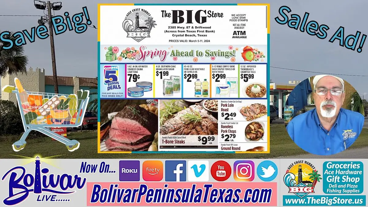 Big Savings at The Big Store Weekly Sales Ad for Bolivar Peninsula Texas.