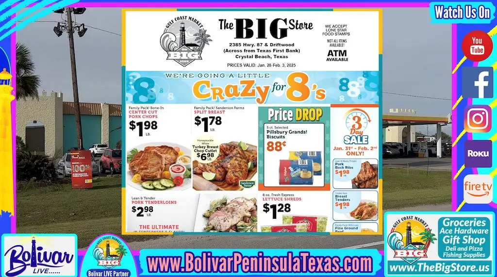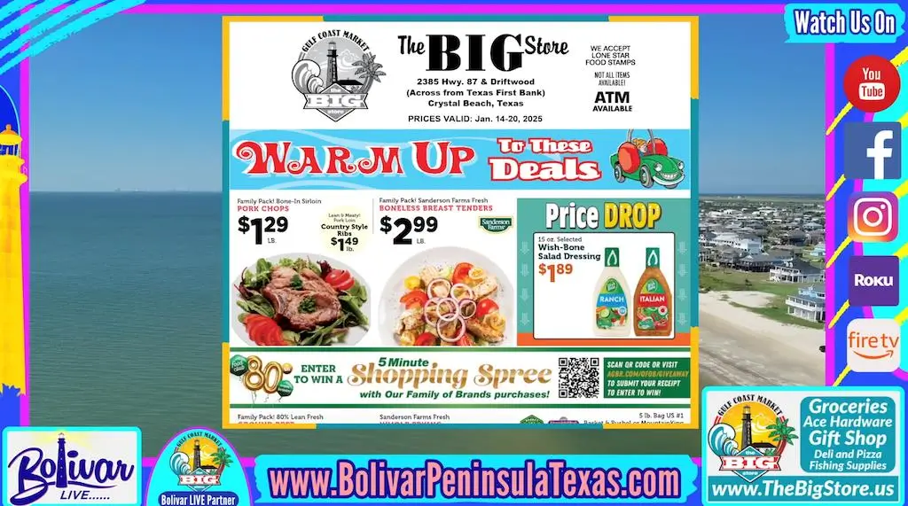 Big Savings at The Big Store Weekly Sales Ad for Bolivar Peninsula Texas.
