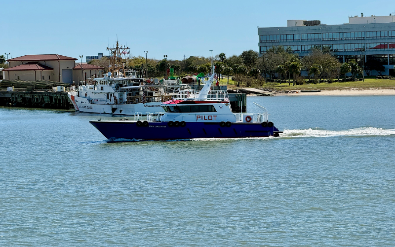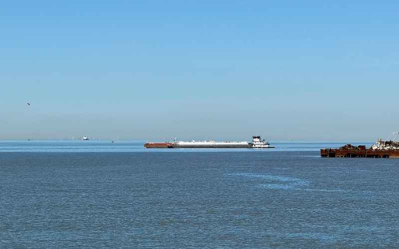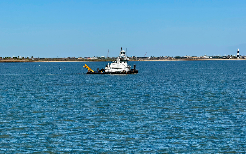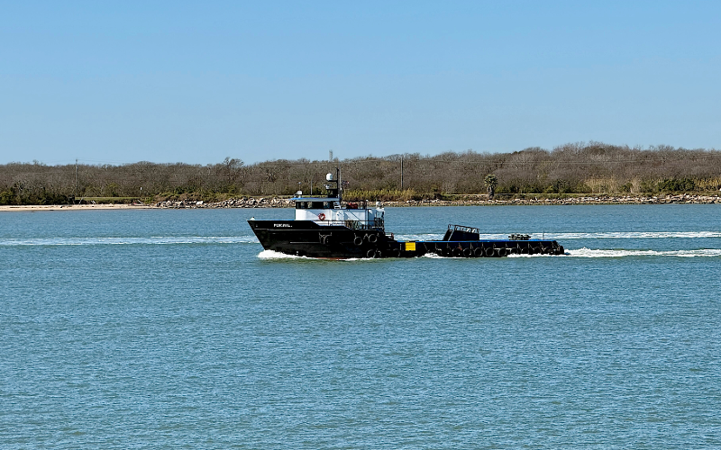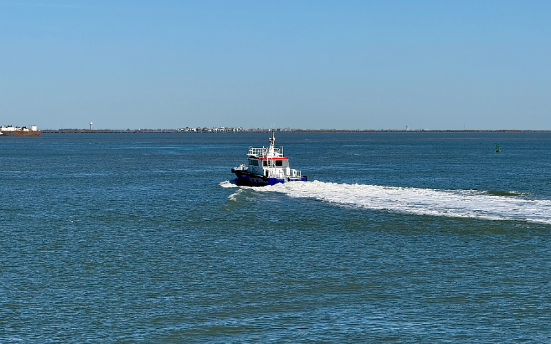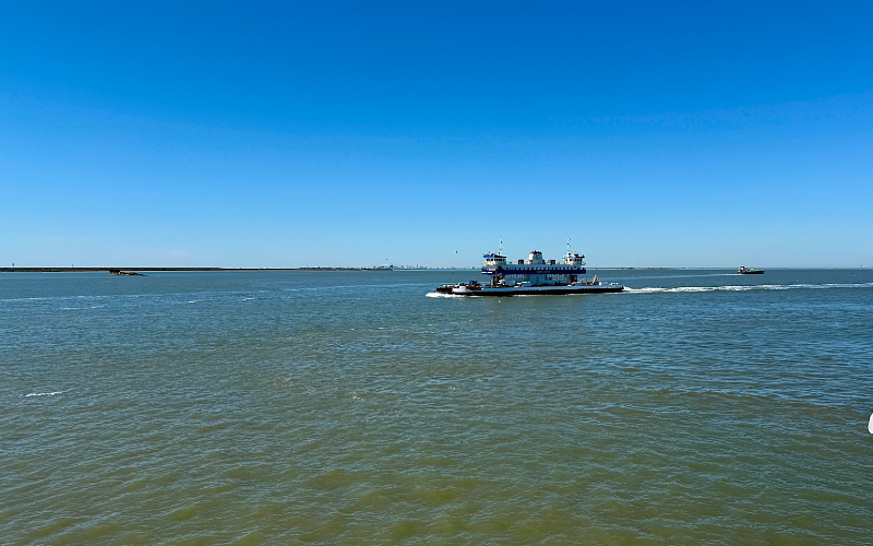 The ferry crosses the Houston Ship Channel, one of the busiest ports in the nation, with approximately 7,000 ships traveling through each year. Along the way, it’s common to spot dolphins swimming alongside vessels, shrimp boats harvesting fresh Gulf seafood, and bay and offshore fishing boats heading to their favorite spots.