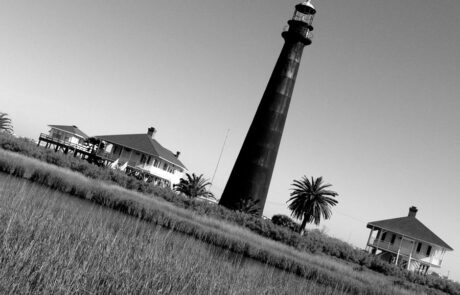 The Bolivar Lighthouse was built in 1852, the heyday of lighthouse construction on the Gulf and Atlantic coasts. It was dismantled during the Civil War by Confederate troops who used the tower’s iron to make cannon balls. The lighthouse was rebuilt in 1872 and served as a beacon to travelers until the 1930s when more sophisticated navigational devices were employed. Bolivar residents used it as a refuge during the 1900 and 1915 hurricanes. It is now privately owned and still serves as a symbol of the peninsula to residents and visitors alike.