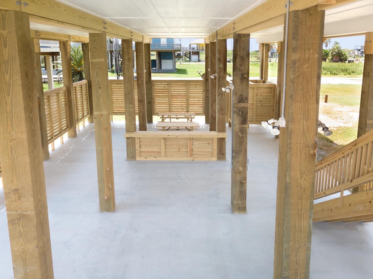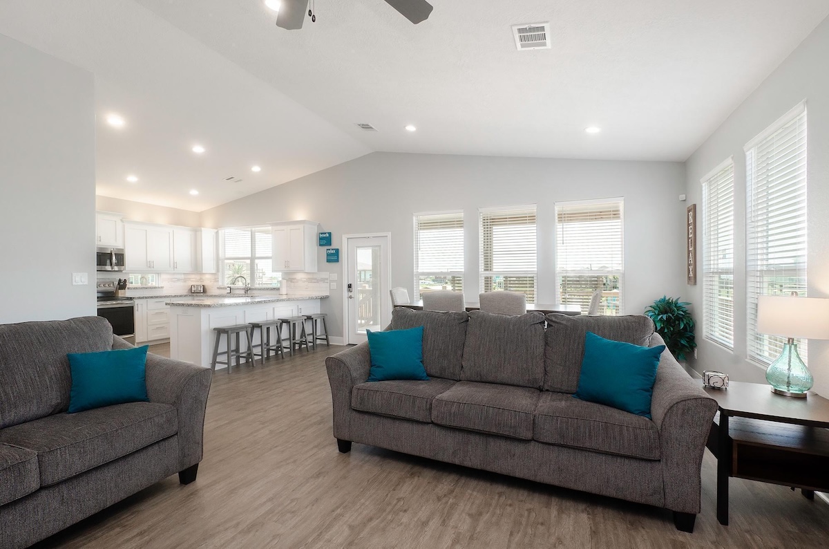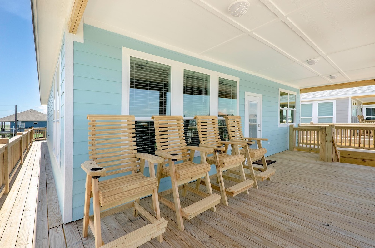 Blue Water Escape is the perfect coastal vacation home just steps from the beach in the desirable Bluewater Subdivision on Bolivar Peninsula. Built in 2020, this beach house offers modern comforts, open-concept living, and a spacious covered deck where you can relax and enjoy the sights, sounds, and Gulf Coast breeze. The seamless living, dining, and kitchen layout makes it ideal for families and groups looking to spend quality time together near the shore.