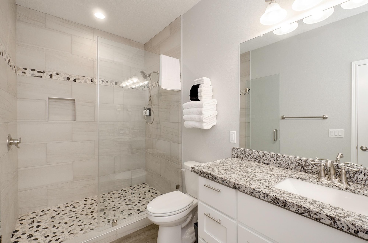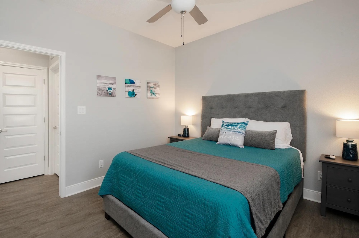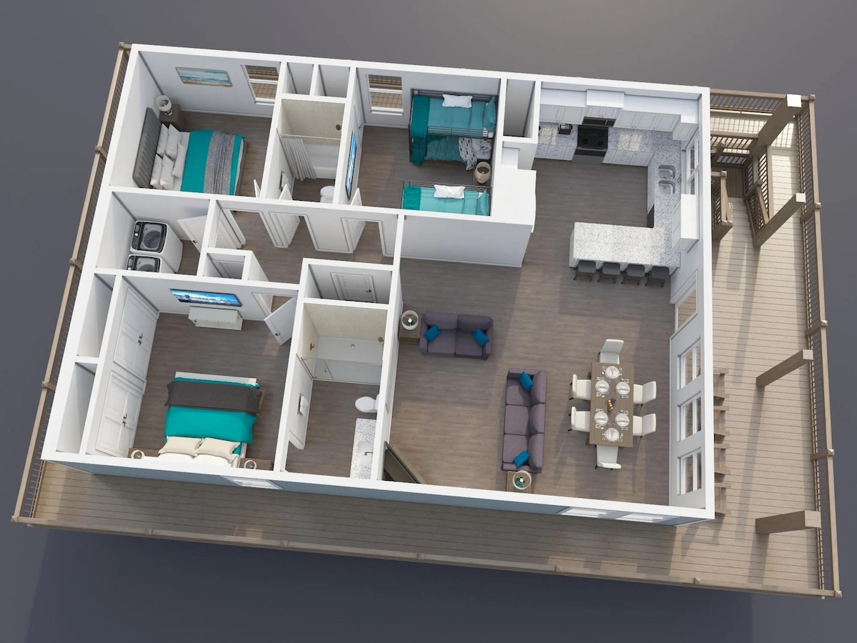 Outdoor living is just as inviting, with a hot and cold outdoor shower to rinse off the sand, a charcoal grill for casual cookouts, picnic tables, and a built-in bar for entertaining. Located next to the Crystal Sands rental and just one home away from Sea Bliss, Blue Water Escape is an excellent option for families who want to vacation together while enjoying their own private space.
