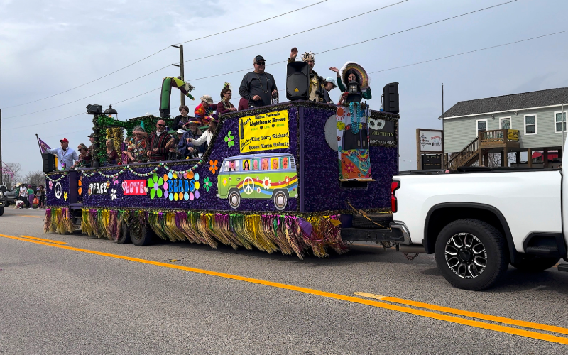 Unlike big-city Mardi Gras celebrations, the Lighthouse Krewe Mardi Gras Parade keeps things intimate, community-focused, and perfectly suited for families. It’s held every year on the Saturday before Fat Tuesday, turning Crystal Beach into a festive hotspot.