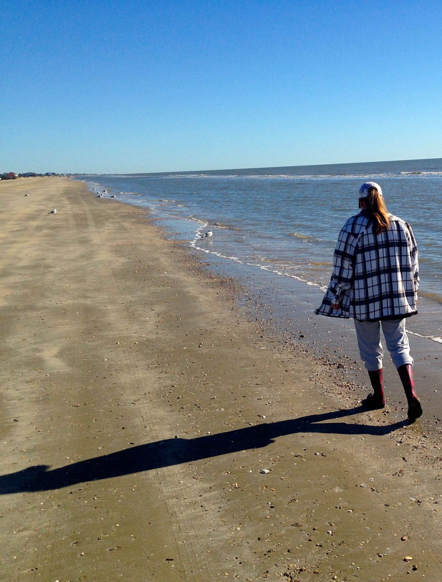 You may see them walking slowly, heads always down, they stand their ground and won’t look-up, their doing the Shark Tooth Shuffle. Look for areas along the tide-line, don’t walk to fast, take your time and carry a bag, treasures from afar could be only a few steps away!